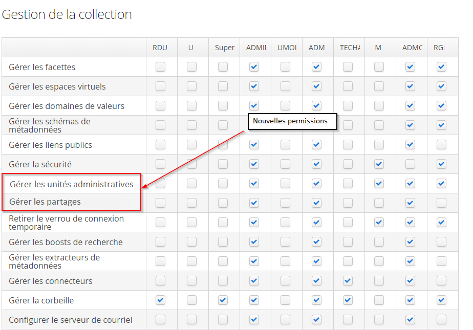 Nouvelles permissions dans la gestion des rôles